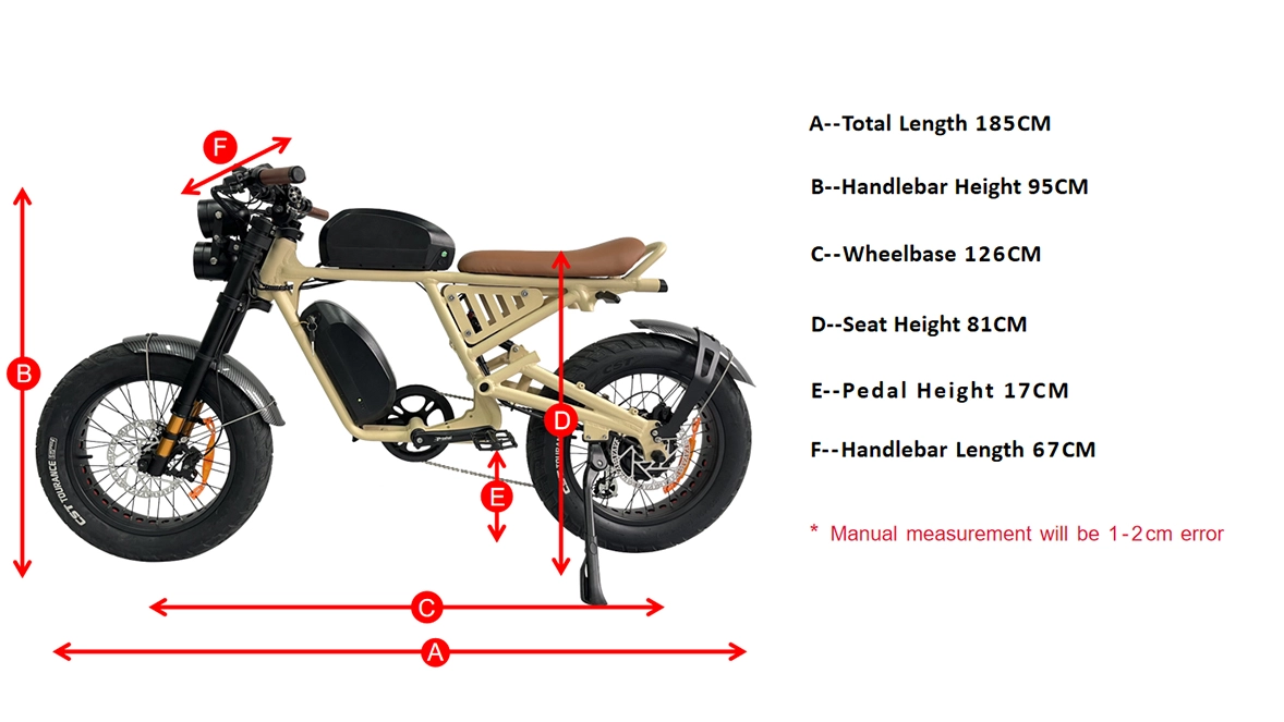 Mit einer doppelten 52 V 20AH -Batteriekapazität bietet es eine Reichweite von bis zu 50 Meilen, sodass Sie tagelang fahren können, ohne sich aufzuladen.